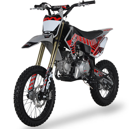 125cc, HS Engine, 4 Speeds Manual, Anodized Hydraulic Front Fork, Seamless Tubing Frame, F/R 17"/14", F/R Hydraulic Disc Brakes.